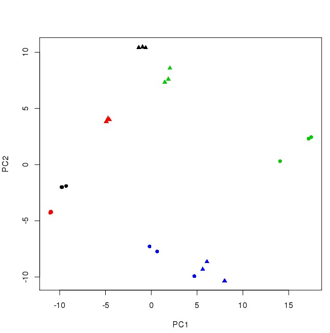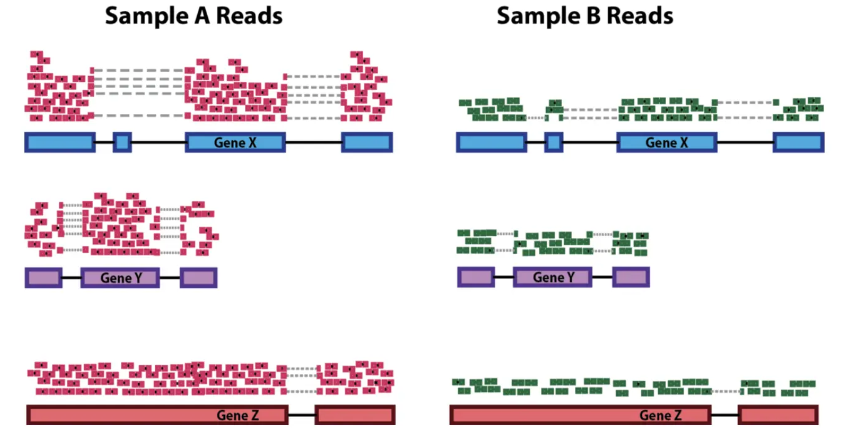 Median of Ratio (DESeq2) 对每个基因计算几何平均数 比较每个样本每个基因和参考样本的Fold Change 用Fold Change 中位数基因代表内参基因进行标准化 TMM: Trimmed Mean of M value (EdgeR) 移除未表达的基因 找数据趋势较为平均的样本当参考样本(依据Q3值) 计算基因偏倚度:LFC (log fold change)和read的几何平均数 (read geometric mean, RGM) 依据LFC和RGM挑选代表基因集, 计算标准化因子
