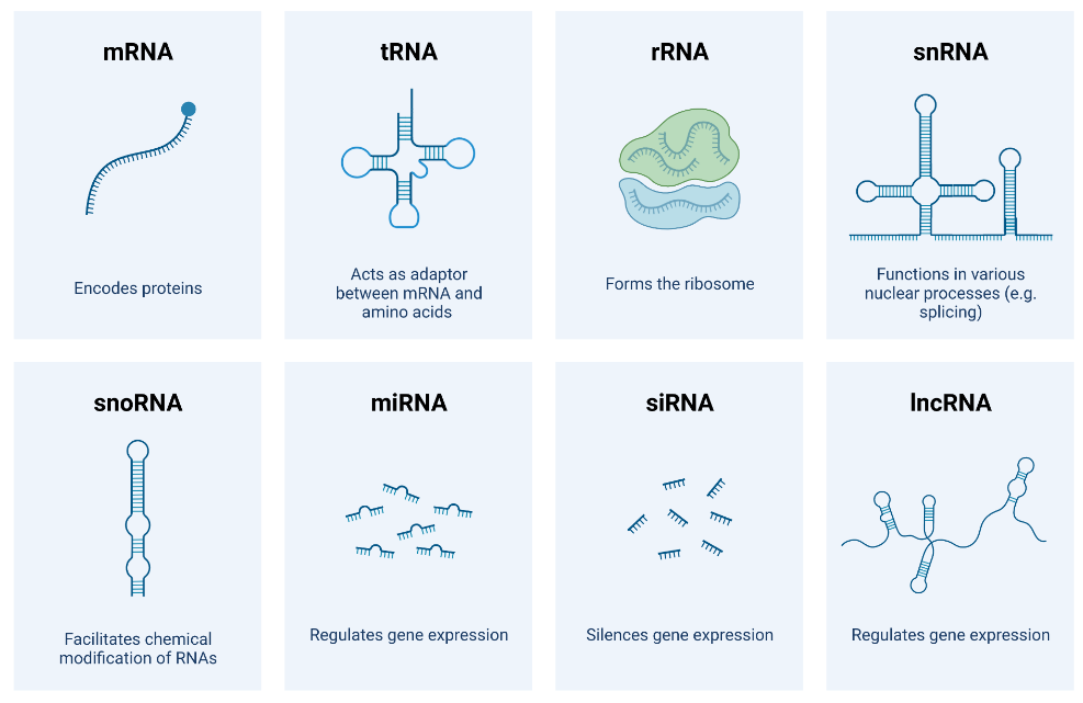 mRNA tRNA rRNA snRNA snoRNA miRNA siRNA lncRNA circosRNA ......