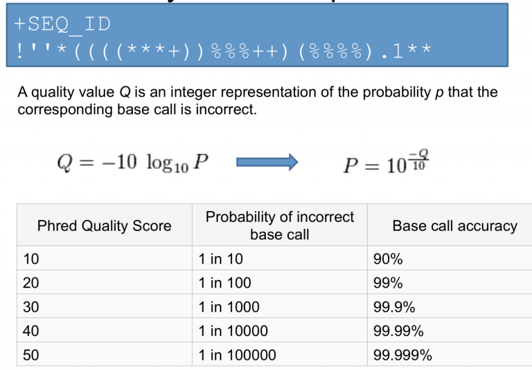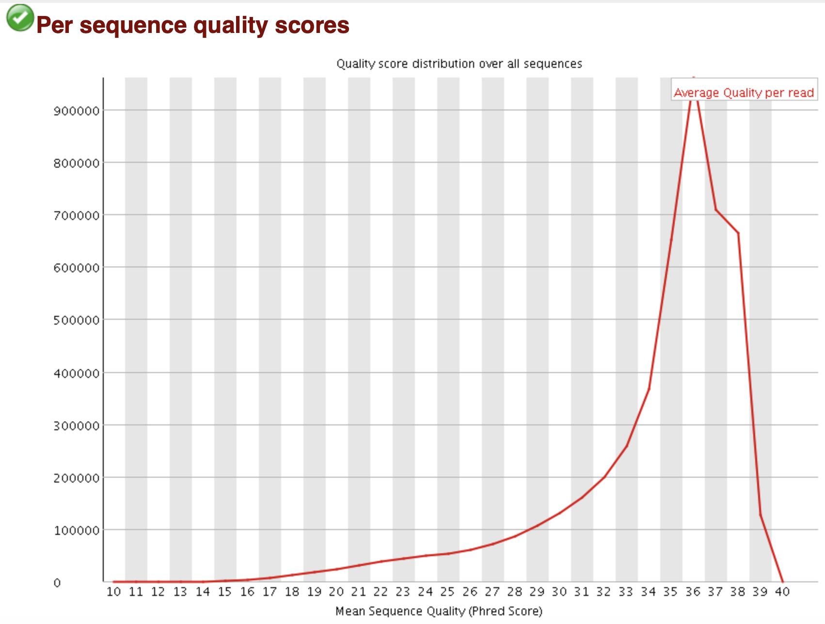 Density Plot X: Mean Q score per reads Y: Number of reads GOOD: 90% reads has Q > 35 WARN: Peak < 27 (error rate > 0.2%) FAIL: Peak < 20 (error rate > 1%)