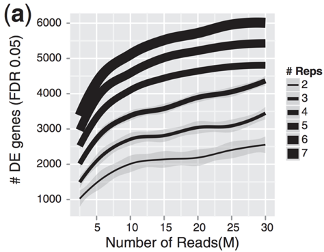 重复越多,对总体均值和方差的估计越准确,越能得到更多DEG。