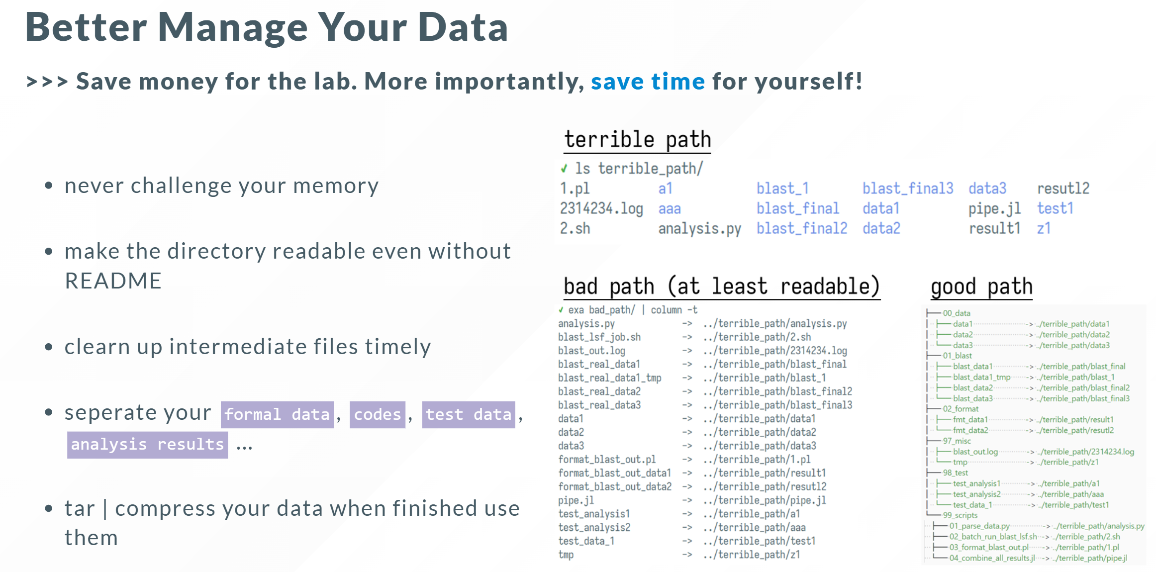 • 绝大多数生信数据格式都是可压缩的, 尽量存储为压缩格式: